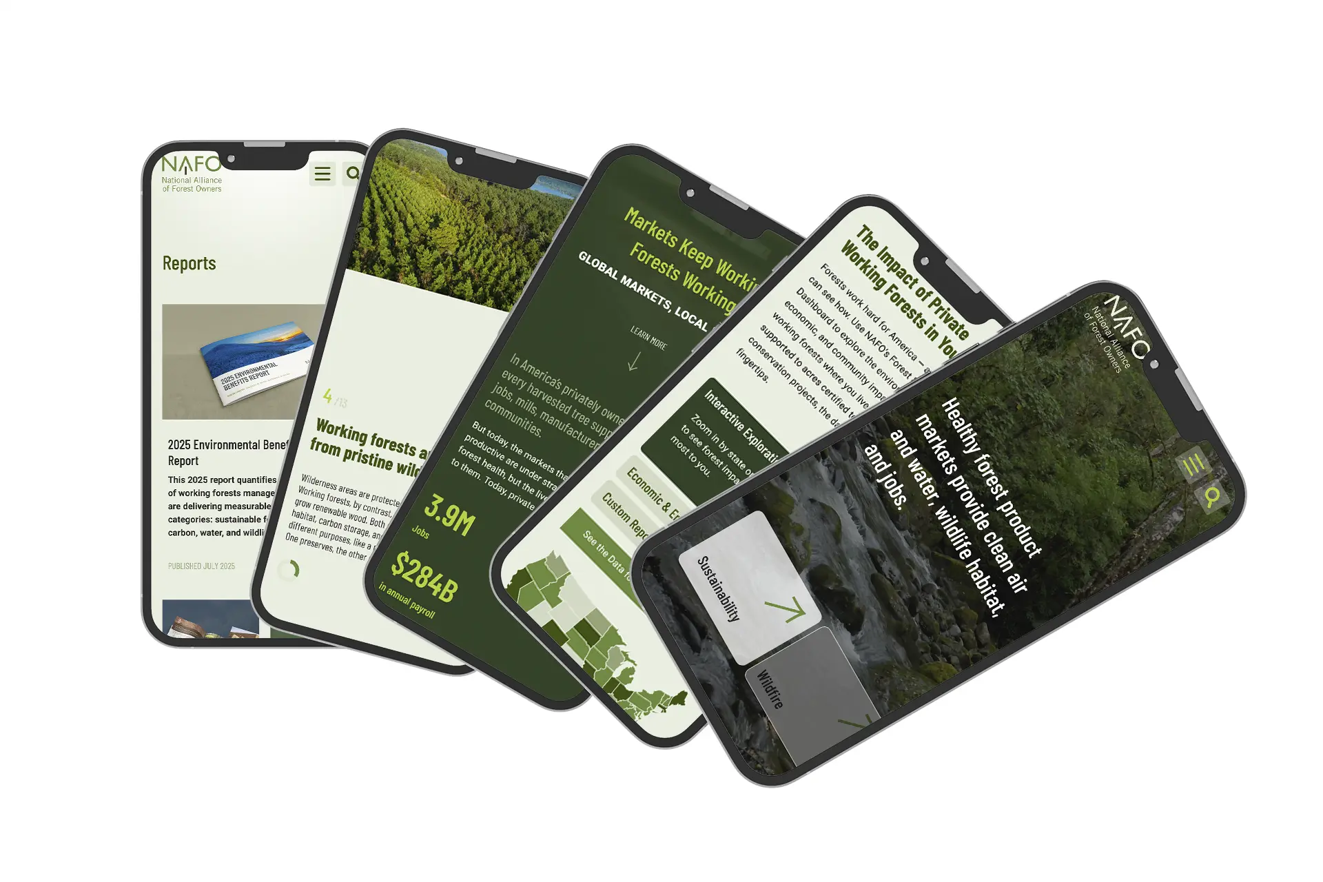 The National Alliance of Forest Owners is an advocacy group for public and private forestry. We helped to give NAFO's message and mission a boost through our website redesign. NAFO's new digital facelift features compelling storytelling layouts, intuitive data dashboards, and a focus on accessible resources for audiences to learn more about responsible and productive forestry in the US.