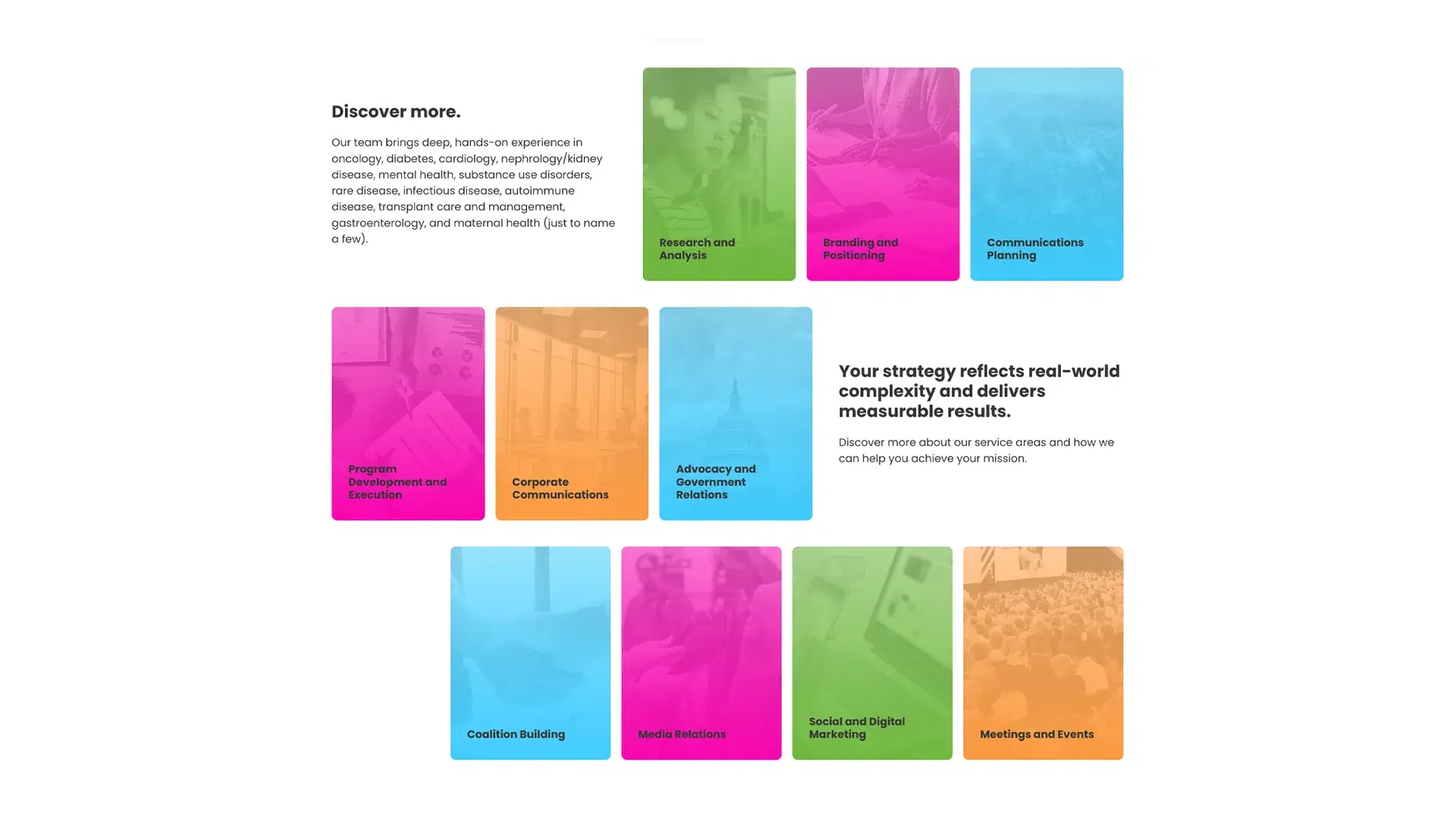 CURA Strategies, a leading firm in healthcare marketing & strategy, approached us looking to give their website a refresh. They wanted to sport a new, professional look that reflected their dedication to their mission, while keeping their bold and 'CURAgeous' personality. We worked together to design and develop a new site-wide visual identity, focusing on engaging interactions to increase user interest, encourage conversion, and tell the story behind the work they do.