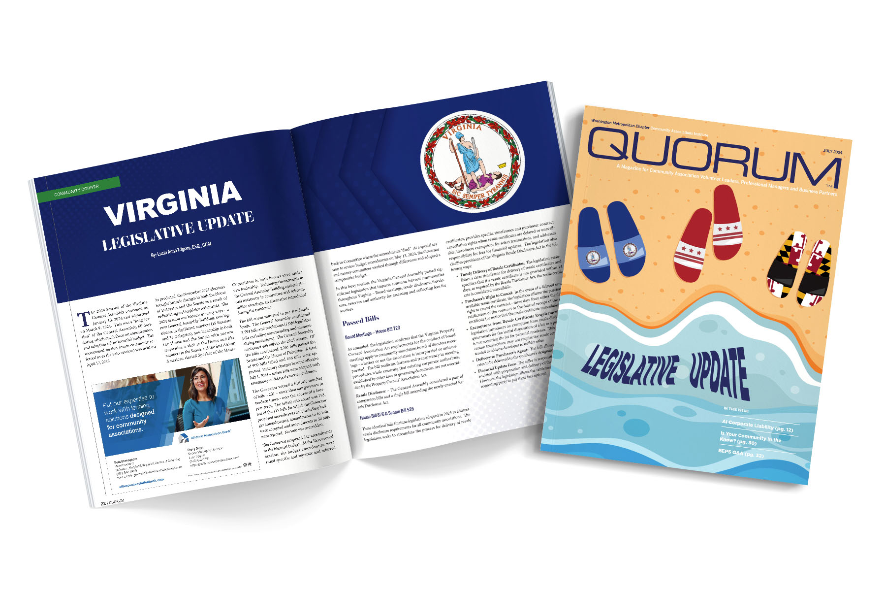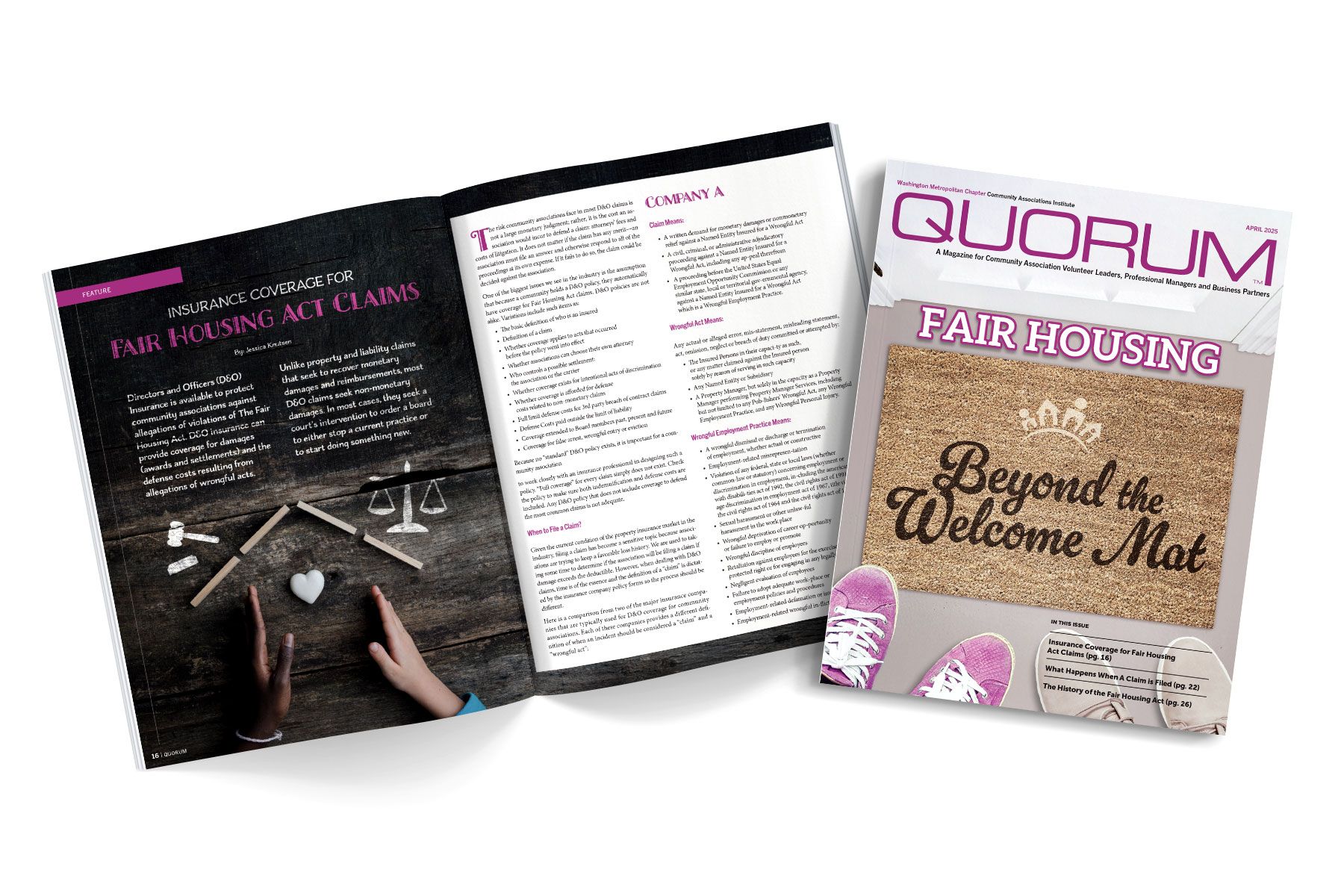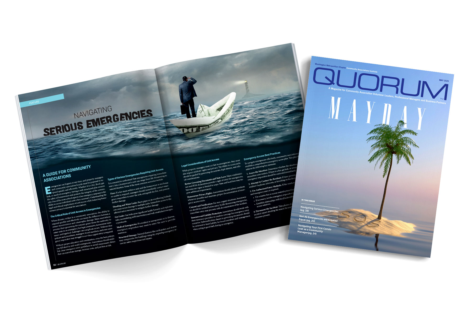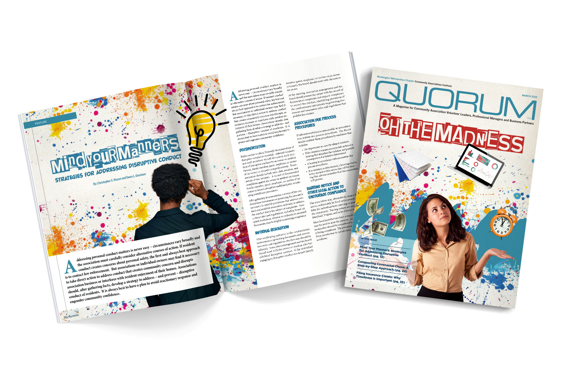 We work with the Washington Metro Chapter Community Associations Institute (WMCCAI) to design and publish their monthly magazine, Quorum. Each month, the magazine's featured articles deliver new information on trends, legislation, and logistics advice to help readers preserve, protect, and enhance their communities.